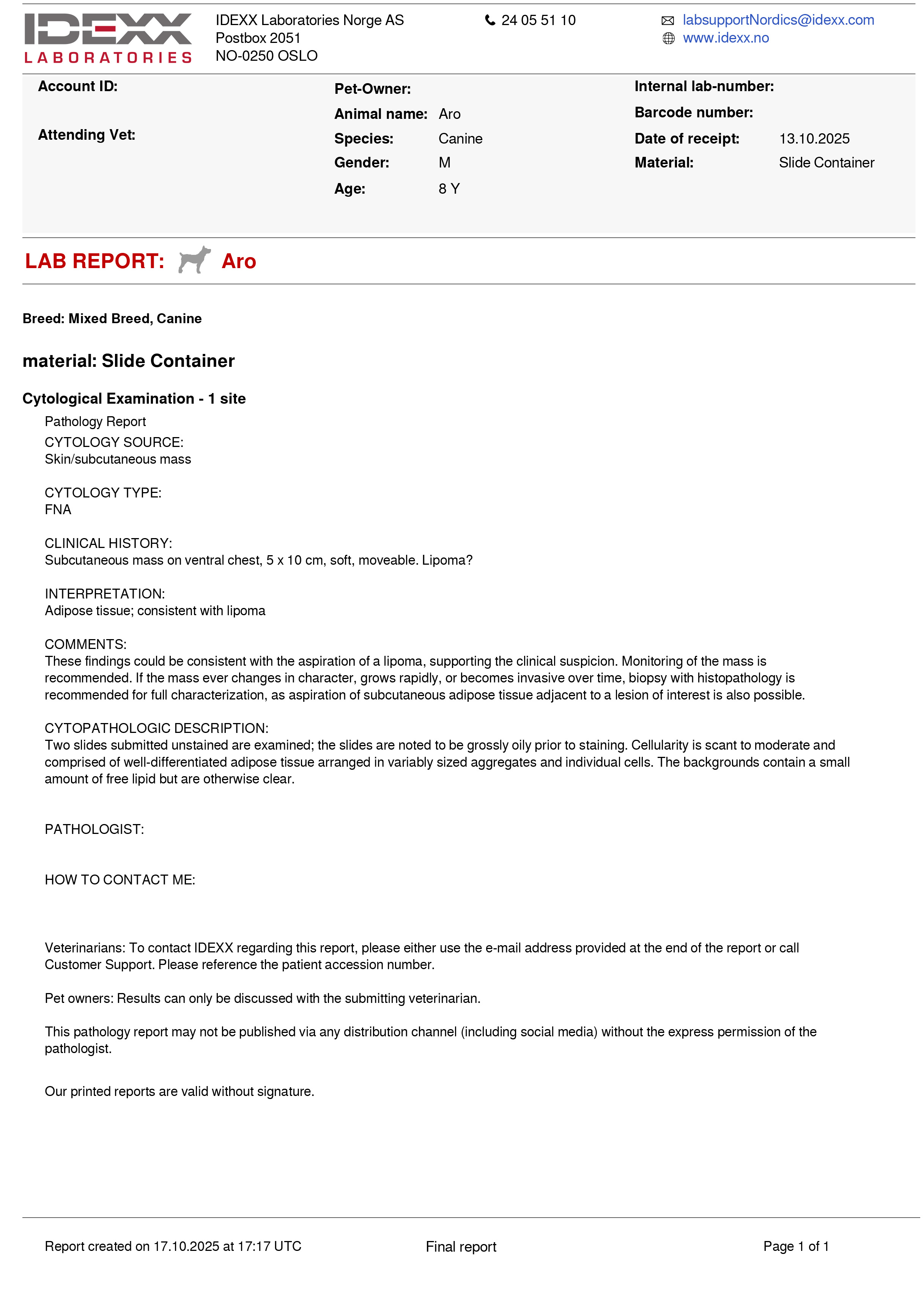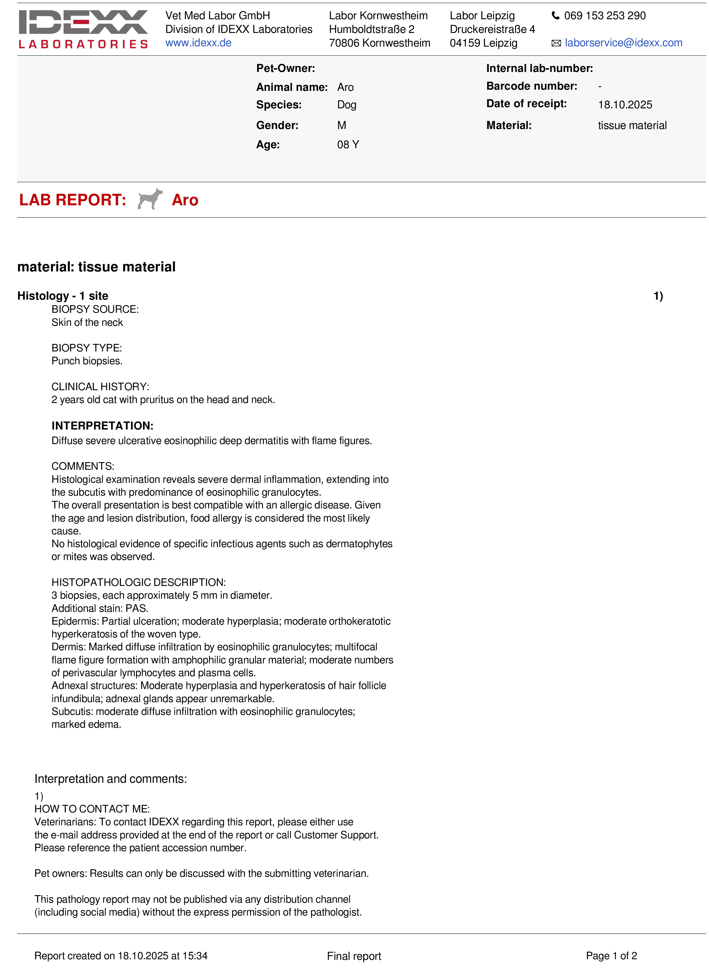 These comments will be called out at the top of the report with ‘NOTE FROM IDEXX’ to highlight updates on processing specimens or actions required to complete processing.